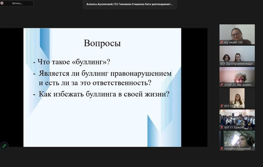 С этой целью 24-25 апреля 2023 года на площадке РУМЦДО МП РК для 400 членов Школьного Парламента из Алматинской, Жамбылской, Туркестанской, Восточно-Казахстанской, Карагандинской областей, области Жетісу, Абай, Улытау и г.Алматы, г. Шымкент проведен вебинар «Школьному буллингу нет! Путь к самоконтролю».